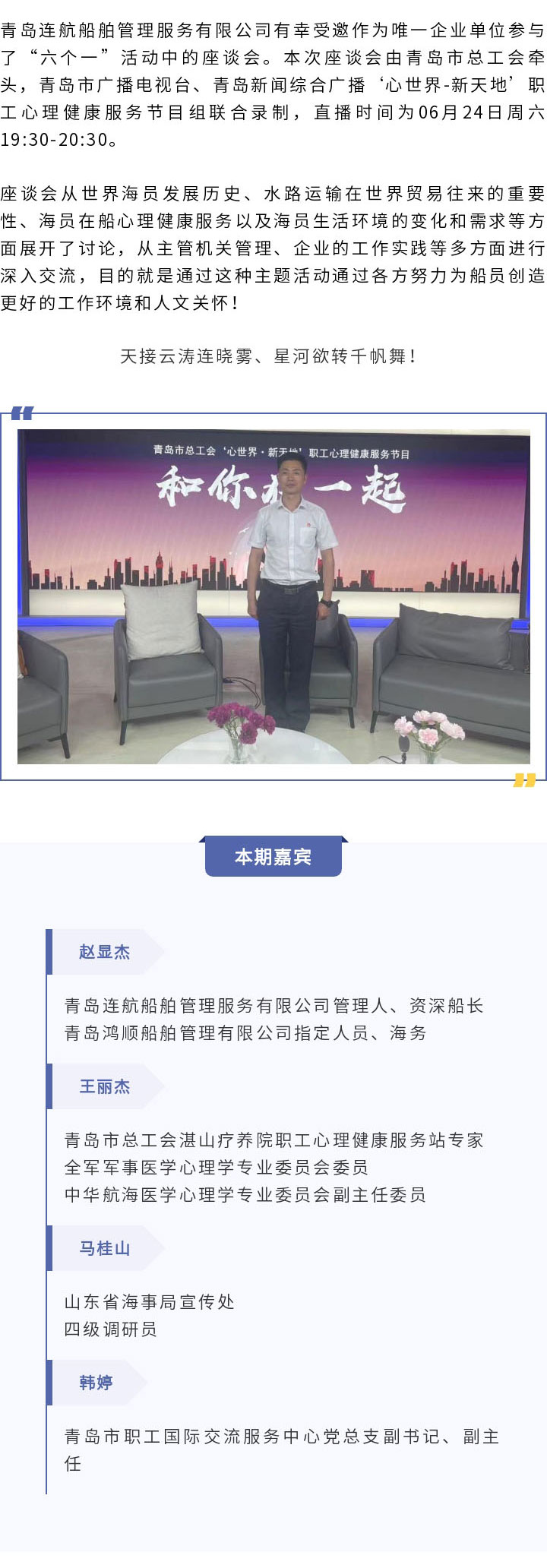青島連航積極參與第十三個(gè)“世界海員日”特別節(jié)目
